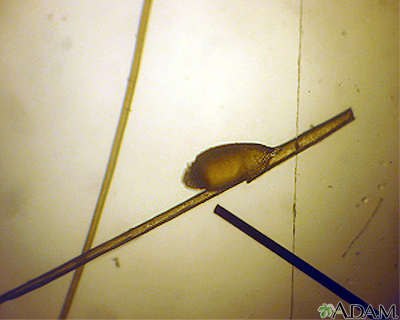 ![]() Exams and TestsHead lice can be hard to see. You need to look closely. Use disposable gloves and look at the person's head under a bright light. Full sun or the brightest lights in your home during daylight hours work well. A magnifying glass can help. To look for head lice: